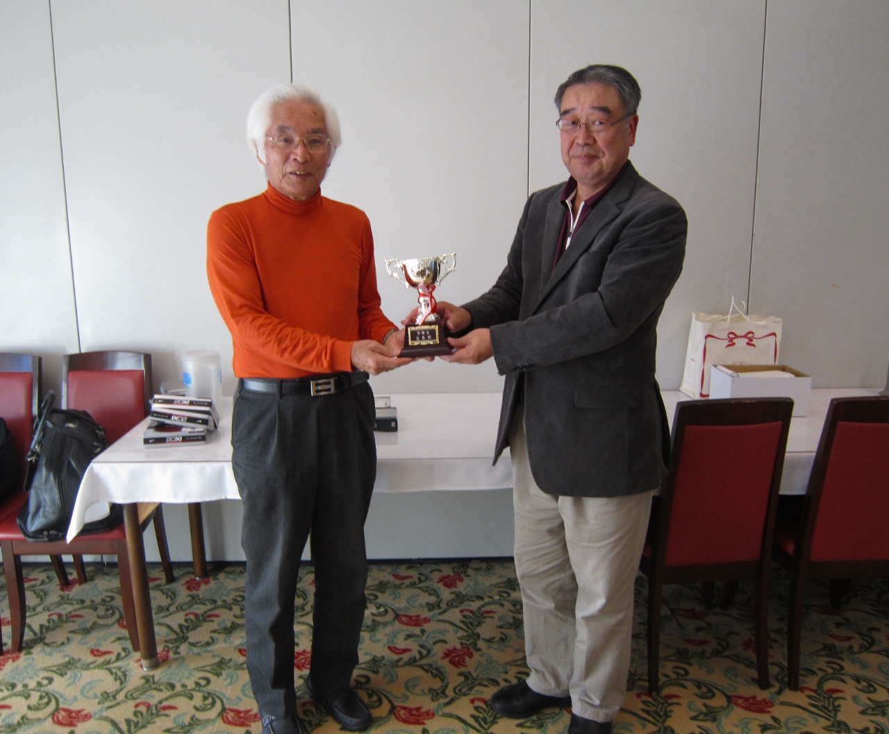 競技は18ホールストロークプレーで行い、塚田尚さんが5回目の優勝を遂げました。塚田さんのスコアは42、37で79、ベスグロも獲りました。2位は、武井利徳さん、3位は、前回優勝の佐藤武さんでした。
