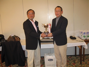 表彰式では、入賞者にはゴルフ場からバッグなど副賞が贈られた。また参加10回以上の14名(欠席された方には後日、お渡しします)に中山賞(グリーンフォーク)が贈られ、中川には、世話人19回を務めたことに対し中山賞(ゴルフバッグ)が贈られました。(幹事・中川六郎)
