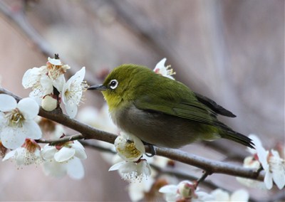 「梅に鶯」と良く言われますが、実はウグイス(鶯)ではなくメジロが正解と思われます。花札にもウグイスが描かれていますので、めじろを鶯と間違えている方が多いようです。