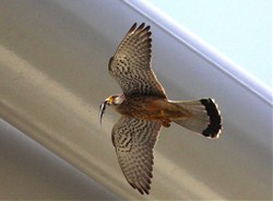 〇分布は日本全国の農耕地、原野、川原等で、4月から5月に本州の広い範囲で繁殖しています。この写真も5月上旬に横浜市の水道橋で子育てをしている「チョウゲンボウ」を撮影しました。