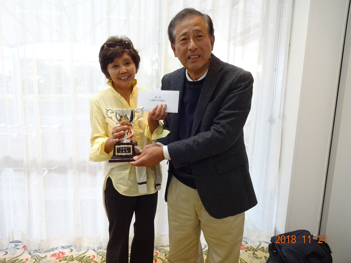 春のような穏やかな天気の下、レディスティーから小百合スマイルで正確なショットを繰り出しスコア72で、徳間小百合さんが初優勝となった。