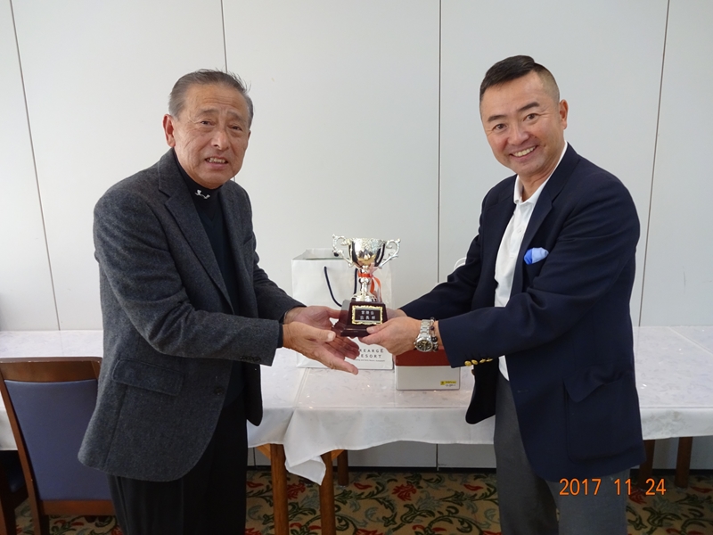 房総半島の紅葉が残る秋晴れのなか宮陵会会長杯争奪戦が繰り広げられ、約4年ぶりに参加した手塚さんがハンデを活かして嬉しい初優勝を飾る結果となった。準優勝には3回連続で渡辺健さん、3位は山口さんが初めての入賞となった。